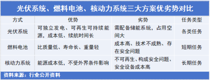 综合成本和安全性看,光伏是目前太空航天器最适合的能源供应方式。