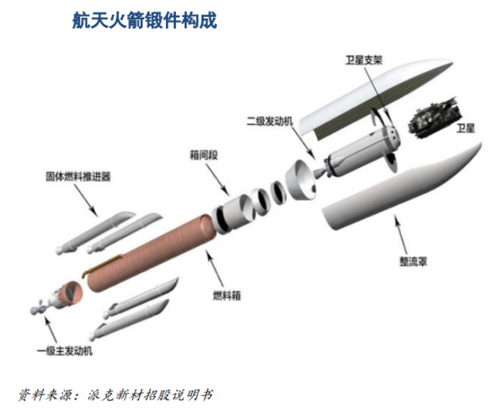 当前,派克新材也已经为主流的商业航天企业,提供箭体结构件和发动机锻件等。