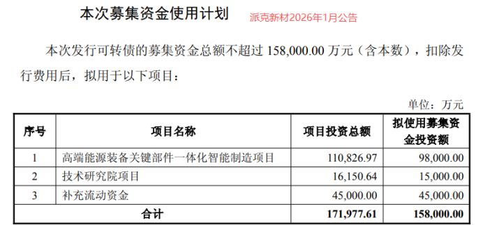 2026年1月,公司公告称,拟募资不超15.8亿,投建高端能源装备部件一体化智能制造项目等。
