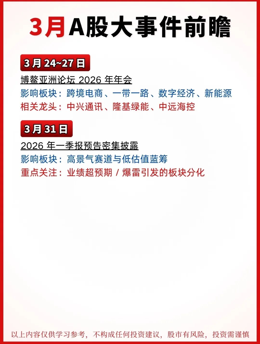 2026年3月A股大事前瞻出炉!