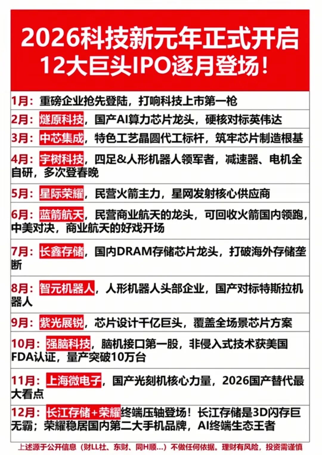 2026科技新元年开启,12大重磅IPO时间表出炉!覆盖AI芯片、机器人、商业航天、存储、光刻机等核心赛道,国产替代与产业升级双轮驱动,提前锁定全年科技投资风向标。