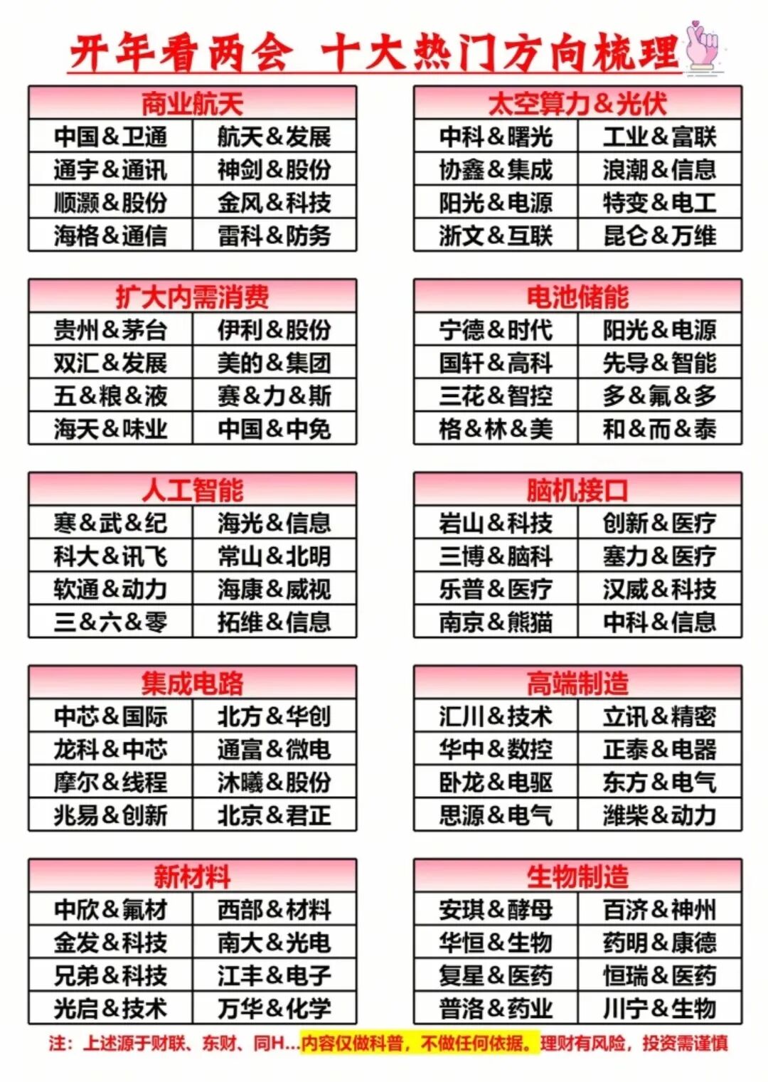 2026两会十大主线全梳理!精准锁定商业航天、AI算力、脑机接口等核心风口,龙头清单一次摆齐。跟着政策方向走,踏准节奏布局,马年持仓稳稳飘红!