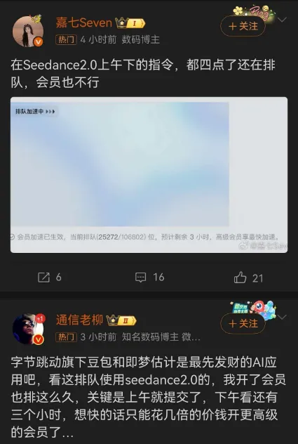 从2月24日节后首个工作日起,字节SD的高级会员动辄10W+的排队,背后原因是节后各类公司和各大视频类的工作室都开始上班,大量的视频类创作开始,这部分to B的客户才是tokens消耗量最大的那部分群体。