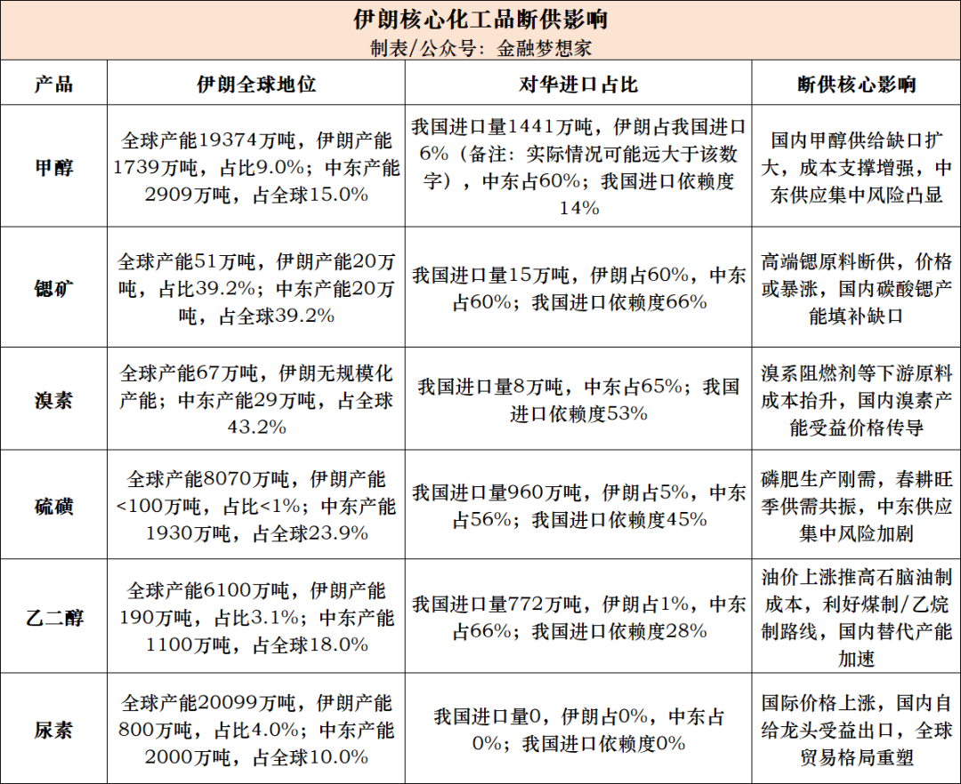地缘冲突下,伊朗作为全球多个关键化工品的前五大生产/出口国,其供应中断将引发全球化工品价格重估。