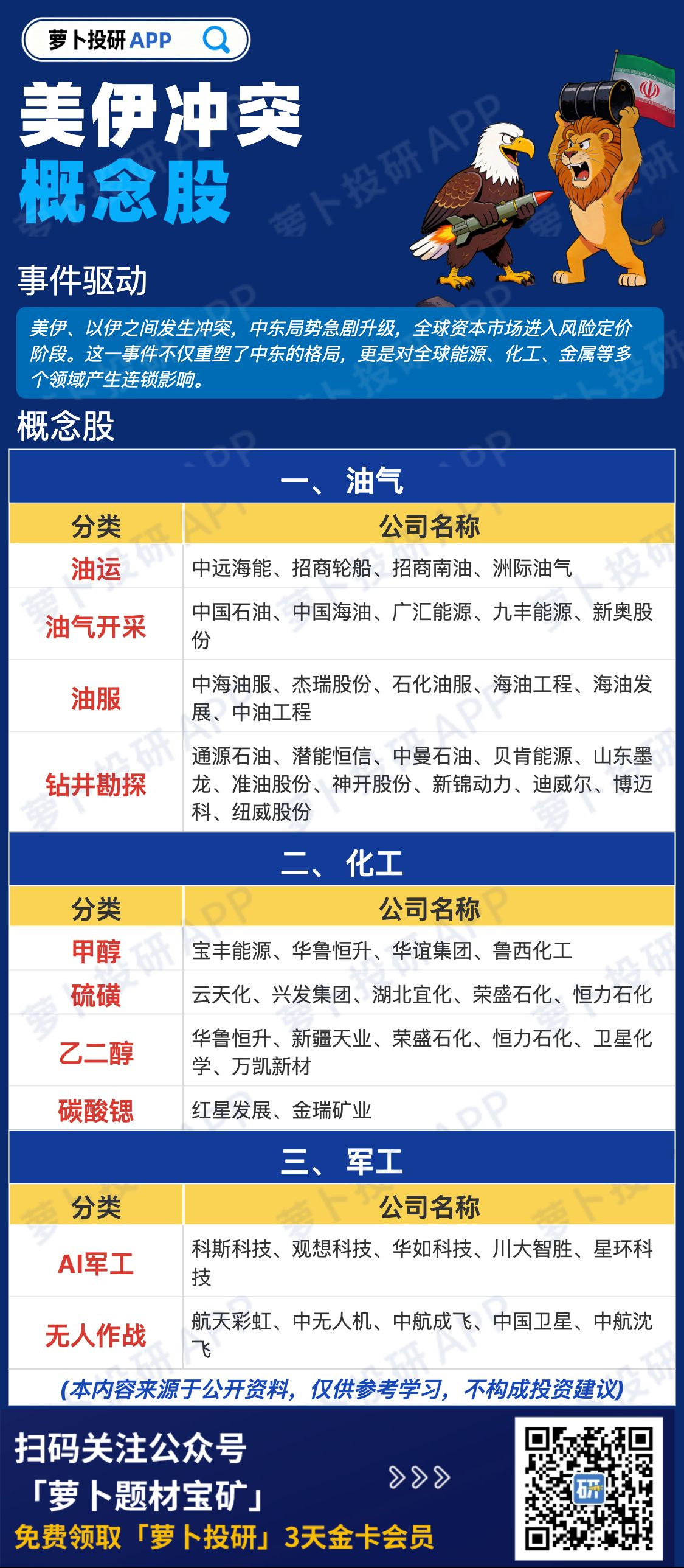 【全网最全】美伊冲突概念股梳理!